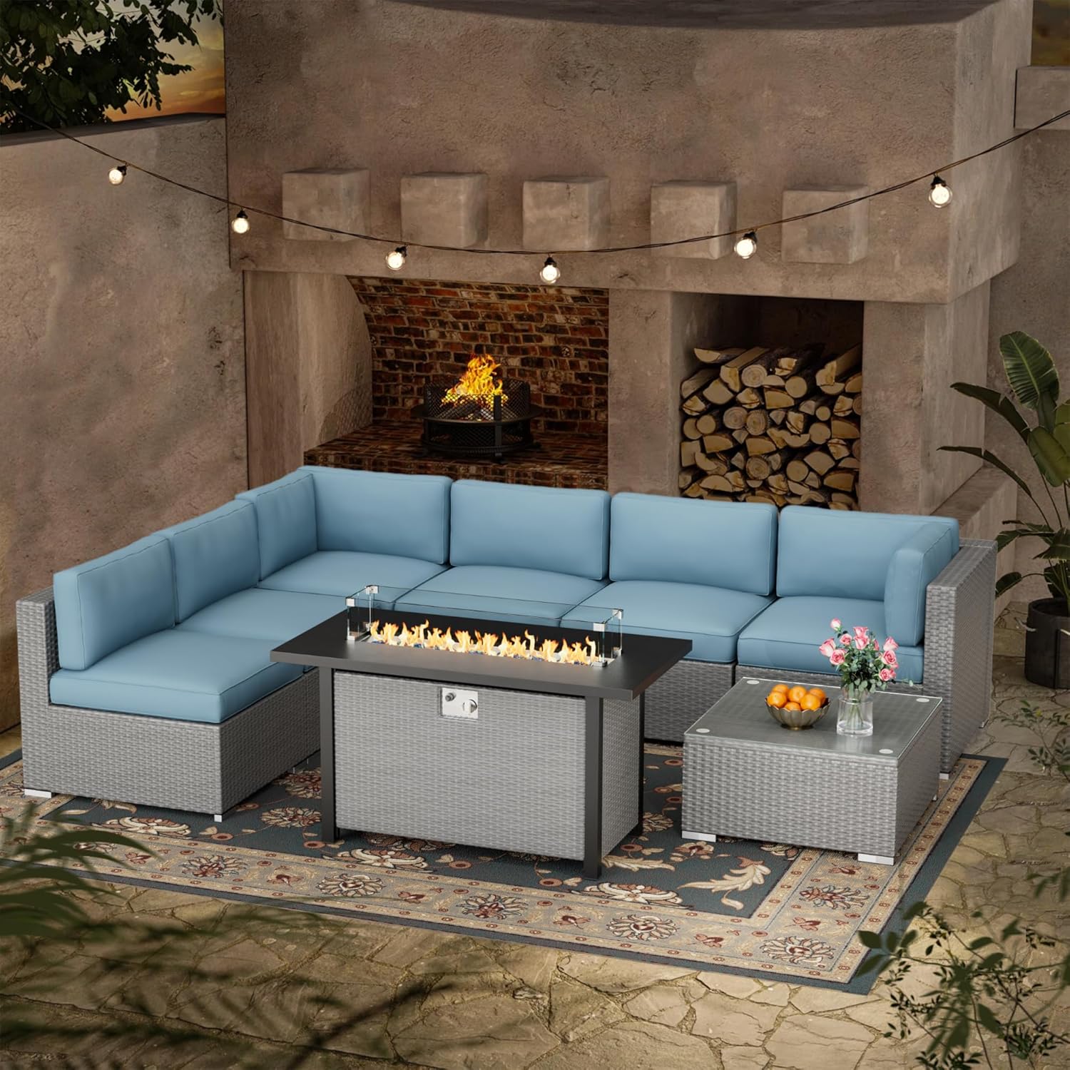| Included Components | Cushions, Glass top table |